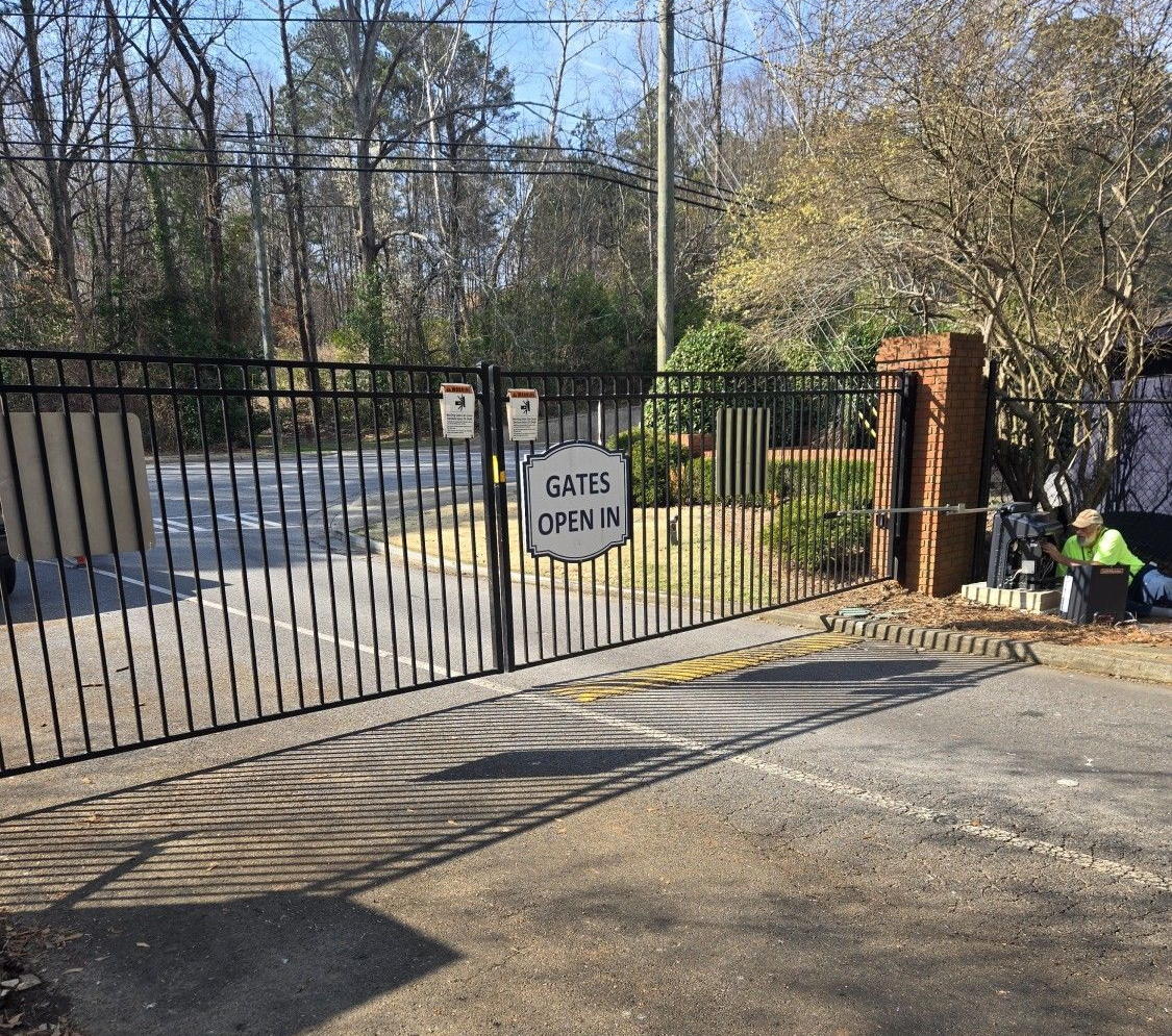 Structural gate correction and reinforcement performed to restore full functionality and long-term reliability. This project included precision realignment, structural re-welding, and reinforcement of the existing gate system to eliminate sagging and improve performance. This type of access control gate repair in Roswell, GA reflects the importance of maintaining properly aligned entry systems across commercial properties in the greater Atlanta access control market. This project focused on correcting years of structural fatigue that had caused the gate to sag and place unnecessary strain on the system. The gate was fully decommissioned and placed into a fabrication jig, where it was professionally realigned using controlled force by the experts at Power Access Control. This precision process allowed us to restore the gate to a perfectly square and level position—critical for proper operation in any commercial access control system. To address underlying structural issues, we ground down all failing picket-to-rail joints and performed high-penetration re-welding across the entire frame. This step reinforced the integrity of the gate and eliminated weak points that had developed over time. For properties utilizing automated entry systems, this level of reinforcement is essential to ensure long-term reliability and prevent recurring failures on this gate agaiin. To further enhance durability, we fabricated and integrated diagonal cross-bracing into the gate structure. This truss-style reinforcement redistributes the load back toward the hinge posts, preventing future sagging and improving overall stability. Structural upgrades like this are a key component of professional gate and access control system repairs throughout Atlanta and surrounding areas like Roswell, GA. As part of the finishing process, all weld points were ground smooth, treated with a rust inhibitor, and carefully color-matched to the existing gate finish. This ensured not only structural performance but also a clean, professional appearance consistent with the original installation.